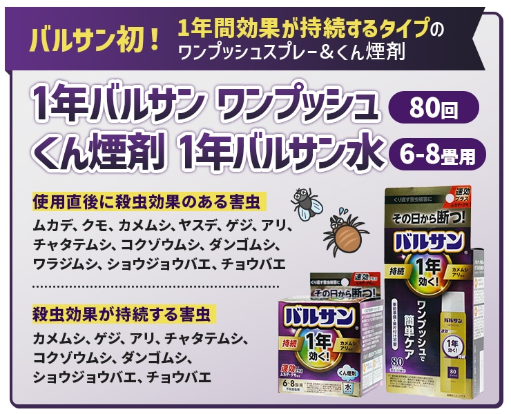 ◆バルサン初1年間効果が持続するタイプのワンプッシュスプレー。